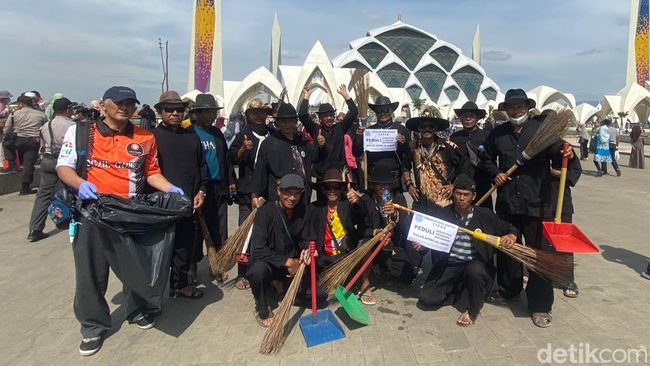"Kami dari Cipamokolan Onthel Komunitas, Cipok. Tujuan kegiatan ini peduli kebersihan, keindahan, kenyamanan Masjid Al Jabbar," kata salah satu anggota Cipok Budi (55) kepada detikJabar.