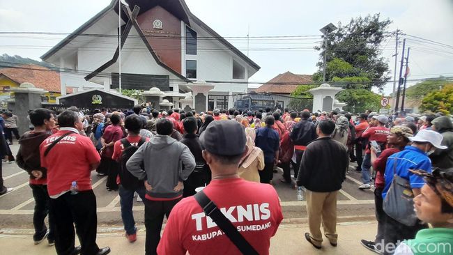 Pantauan detikjabar aksi unjuk rasa tenaga honorer K2 Sumedang yang dimulai dari pukul 13.00 WIB. Hingga kini ada sebanyak 30 orang saat ini tengah melakukan audiensi bersama anggota DPRD Sumedang.