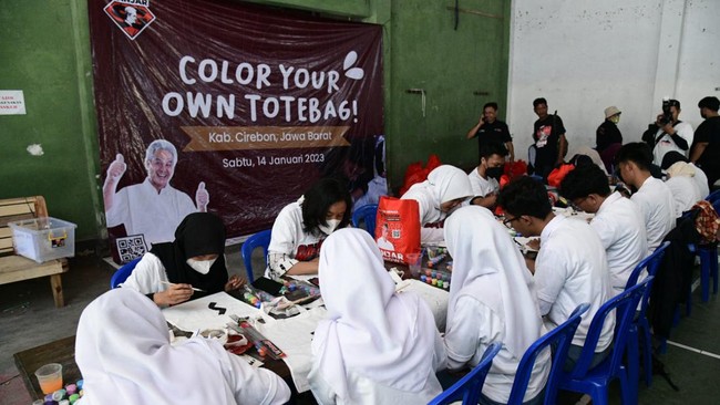 Pada Sabtu (14/1), Sahabat Ganjar mengajak warga yang tergabung dalam Komunitas Seniman Lukis dalam kegiatan di Balai Desa Karangasem, Kecamatan Plumbon, Cirebon. Dalam kegiatan bertema 'Color Your Own Totebag', para peserta ditantang berkreasi dan bebas berekspresi di atas totebag sebagai media lukis.