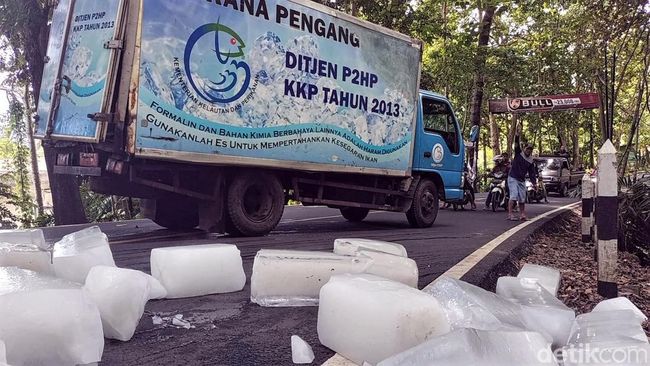 "Saya satu arah, dari Cisolok menuju Palabuhanratu. Dari jauh kelihatan mobil itu kepayahan saat akan melintasi tanjakan, tidak lama pintu penahan terbuka dan es balok yang tersimpan di dalam berjatuhan, saya berzigzag menghindar," kata Herdi, salah seorang pemotor kepada detikJabar, Selasa (17/1/2023).