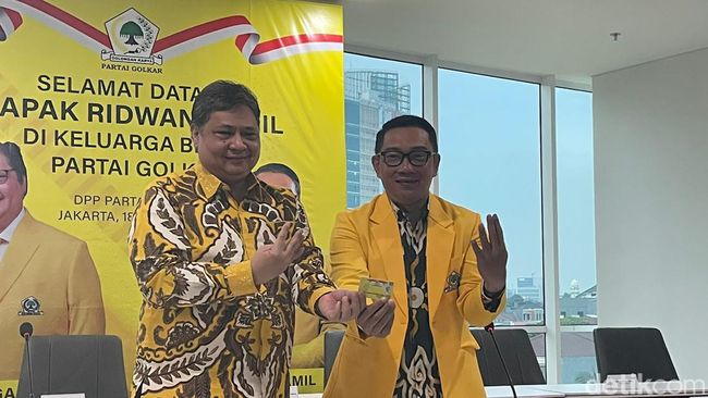 Gubernur Jawa Barat Ridwan Kamil resmi bergabung dengan Partai Golkar. Bergabungnya pria yang akrab disapa Kang Emil itu diumumkan langsung Ketua Umum Partai Golkar Airlangga Hartarto pada Rabu (18/1/2023)