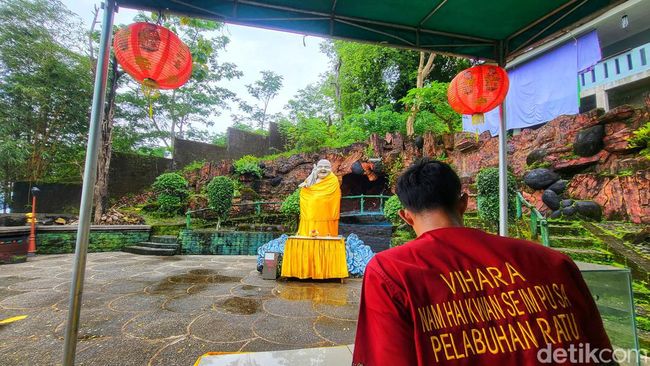 Vihara Dewi Kwan Im sendiri memiliki lokasi yang sangat strategis, berada di ketinggian 100 meter menghadap ke Teluk Palabuhanratu dengan pemandangan eksotis. Area lahannya mencapai 5 hektare dengan 2,5 hektare di antaranya berdiri sejumlah bangunan.