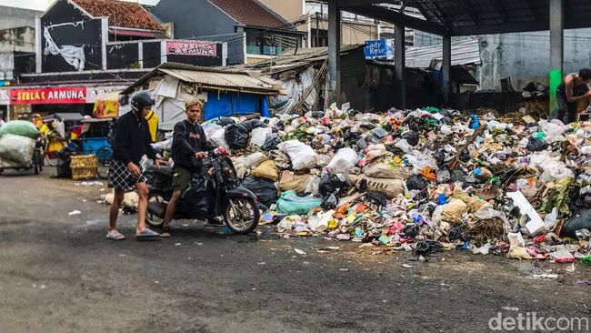 Pantauan detikJabar, Kamis (26/1/23) tumpukan sampah terlihat di kawasan Pasar Lama Kecamatan Cihideung. Kondisinya meluber di pinggir jalan hingga hampir menutupi setengah badan jalan. Masyarakat sekitar terutama pedagang mengeluhkan bau sampah yang menyengat.