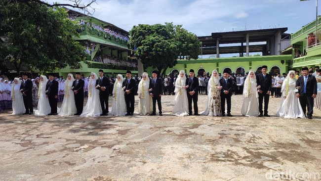 "Efisiensi anggaran, setelah orang tua dipanggil bahwa anaknya akan dinikahkan. Mereka pun bertanya kaitan dengan pembiayaan. Tapi pesantren tidak membebankan pada orang tua, akhirnya semampunya mereka saja," ucap Nonop.