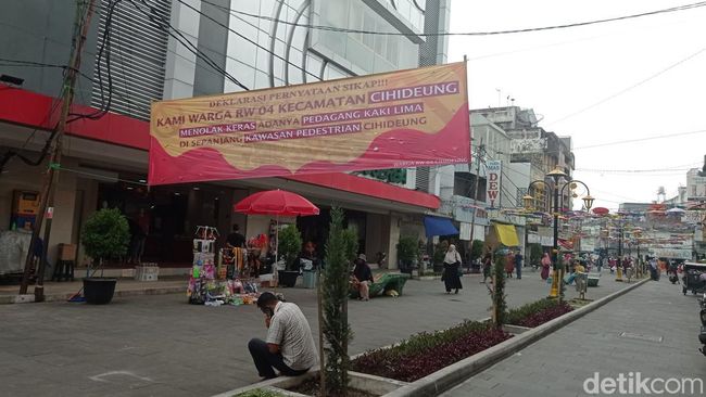 Penolakan itu diekspresikan warga dengan memasang spanduk penolakan di Jalan Cihideung. "Deklarasi pernyataan sikap. Kami warga RW 04 Kecamatan Cihideung menolak keras adanya pedagang kaki lima di sepanjang kawasan pedestrian Cihideung," demikian tulisan pada spanduk yang dibuat warga.