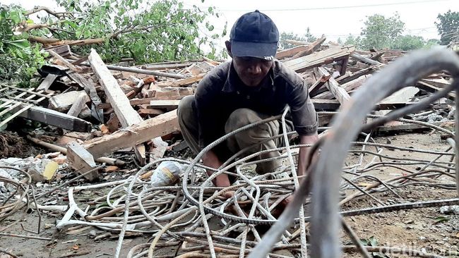 "Hanya ini mungkin yang bisa dijual, sisa-sisa besi, karena semua hancur. Genteng, kayu, bata, padahal gak harus dihancurkan, kita bisa bongkar sendiri biar bisa dipakai ulang," ucapnya.