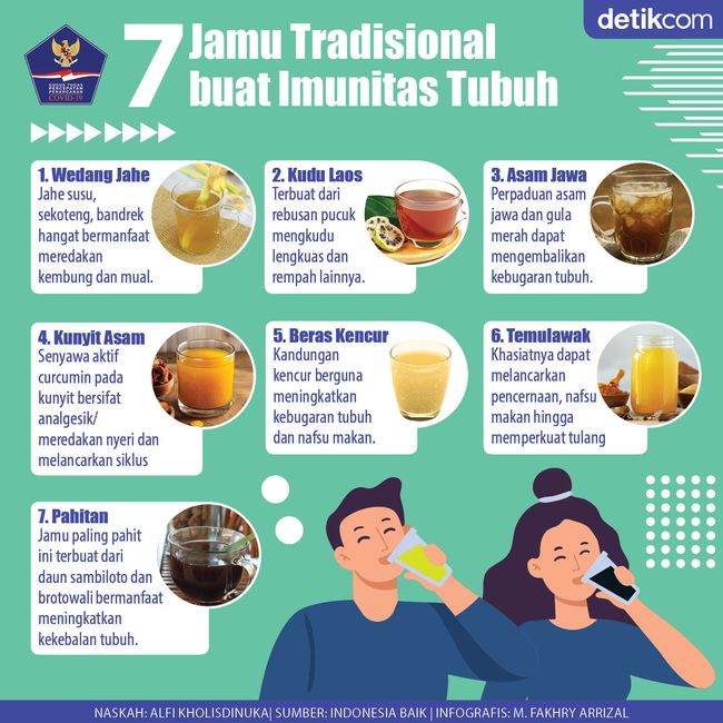 Bandung - Jamu dikenal sebagai minuman herbal asal Indonesia yang punya banyak manfaat untuk tubuh. Salah satunya untuk meningkatkan imunitas tubuh. detikers bisa mencoba mengkonsumsi berbagai jamu agar terhindar dari penyakit. Berikut deretan jamu yang bermanfaat untuk kesehatan.