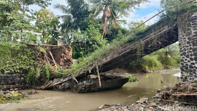 Jembatan penghubung antardesa di Kecamatan Conggeang, Kabupaten Sumedang akhirnya ambruk, Senin (5/2/2023) dini hari tadi. Akibatnya, akses jalan warga pun menjadi terputus.