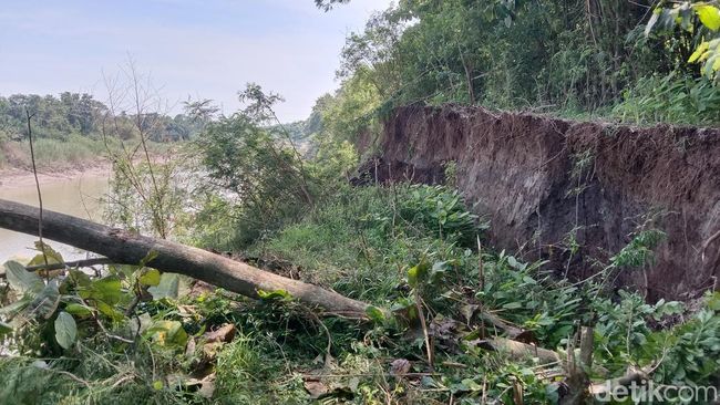 Tanggul Sungai Cimanuk di blok Gumiwang Utara, Desa Sukagumiwang, Kecamatan Sukagumiwang, Kabupaten Indramayu, Jawa Barat, ambles. Pantauan detikJabar, amblesnya tanggul sungai sepanjang 700 meter itu sudah mencapai sekitar lima meter.