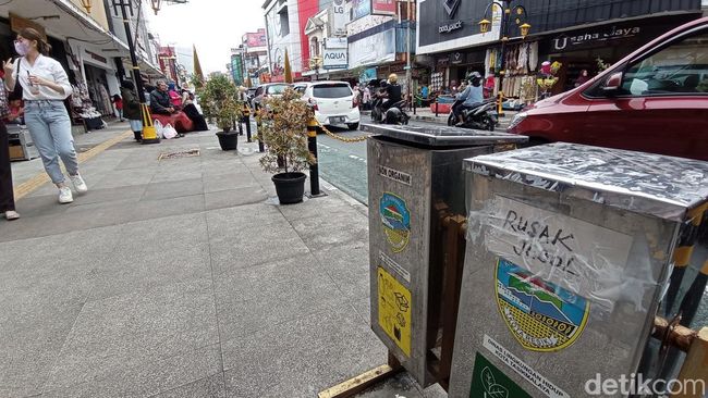 Belasan tempat sampah di sepanjang kawasan jalur pedestrian Jalan HZ Mustofa dan Jalan Cihideung, Kota Tasikmalaya, rusak. Kondisi itu dikeluhkan oleh pengunjung pusat keramaian yang dikenal dengan kawasan Malioboro Tasik itu.