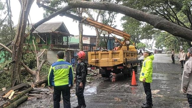 Fajar mengaku tidak mengetahui jenis pohon yang tumbang, namun untuk usia diperkirakan sudah cukup tua. "Tinggi pohon sekitar 20 meter, ini sampai melintang jalan. Saat ini masih kita potong menggunakan gergaji mesin," pungkasnya.