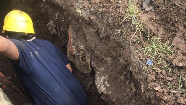 Tukang gali kabel dikejutkan dengan seekor ular piton atau sanca dengan panjang 3,5 meter. Ular itu ditemukan saat tukang sedang bekerja menggali lubang untuk memeriksa kabel yang ada di dalam tanah.