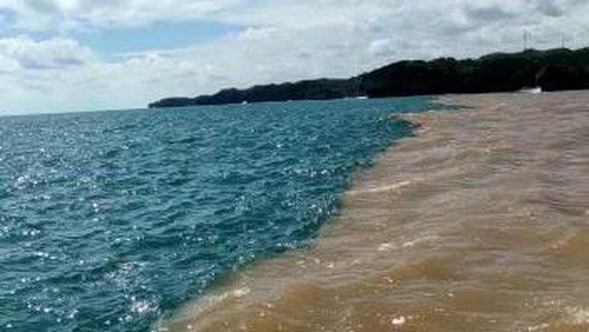 Surisdiyanto mengatakan air laut di sisi selatan berwarna biru. Sedangkan di sisi utara tampak air berwarna cokelat sehingga membuat perairan seperti 'terbelah'. Dia menjelaskan, fenomena itu terjadi karena meluapnya sungai bawah tanah Pantai Baron.