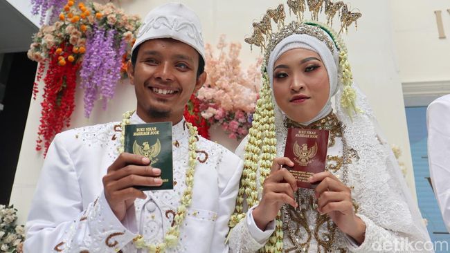 Suasana bahagia langsung terlihat di lokasi nikah massal begitu saksi mengucap kata sah yang menandakan kedua mempelai resmi menjadi suami istri. Saking bahagianya, para pengantin ini tak bisa menahan air mata bahagia.