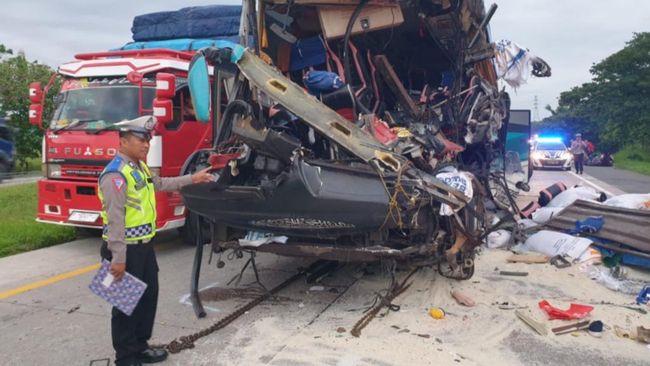 "Kedua kendaraan melaju dari arah Cikopo menuju Palimanan setiba di TKP diduga pengemudi bus kurang antisipasi sehingga menabrak bagian belakang kendaraan truk muatan beras," kata Endang, Sabtu (25/2/2023).