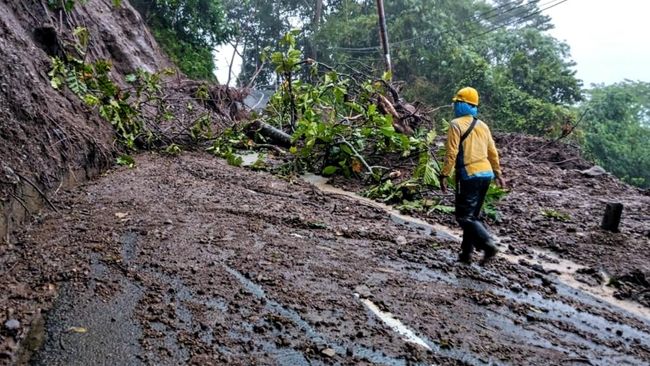 Sandra menjelaskan longsor terjadi akibatintensitas curah hujan cukup tinggi, hal itu membuat tebing setinggi 20 meter mengalami longsor dan menutup jalan.