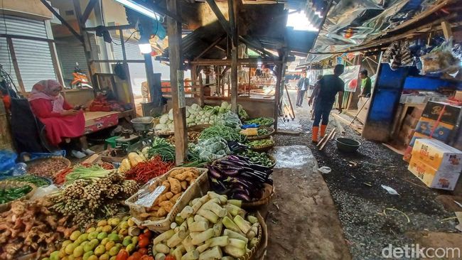 Pantauan detikJabar, jalan-jalan di antara kios pedagang saat ini telah disimpan batu kerikil. Padahal sebelumnya area setiap pedagang pasar selalu becek.