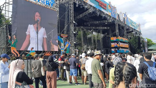 Sembari berlari, sang puan memasuki panggung Now Playing Festival hari keua yang berlangsung di Lapangan Pussenif, Bandung, Sabtu (4/3/2023). Tak lupa, dia menyapa penonton dari atas panggung.