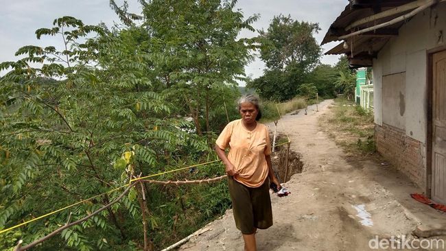 "Priben cah ambles maning dalan, kepriwen kuh kari semeter gah ana mbuh beli. (Gimana ambles lagi jalannya, bagaimana itu tinggal satu meter ada apa gak)," cemas Sawinah.