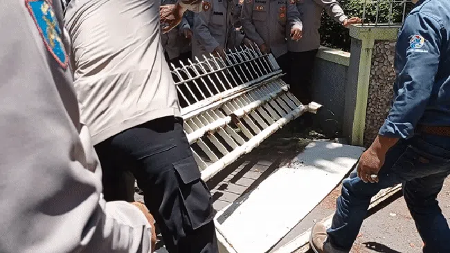 Akibat ketegangan yang terjadi antara demonstran dan aparat itu, pagar pintu masuk Perum Perhutani Jabar dan Banten roboh. Dorong-dorongan ini tak berlangsung lama. Situasi kembali kondusif. Pejabat dari Perum Perhutani Divre Jabar dan Banten pun menemui demonstran.