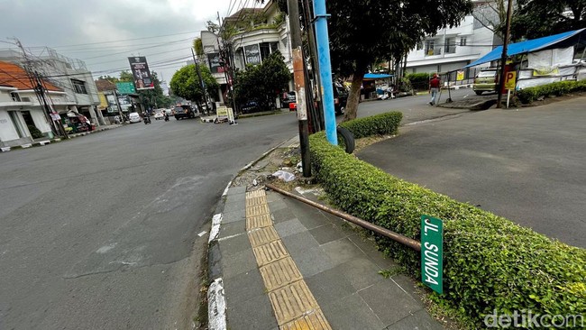 Dalam pantauan detikJabar, tiang itu berada tepat di depan salah satu warung mie legendaris kota Bandung. Selain tak indah dipandang, rubuhnya tiang ini juga mengganggu pejalan kaki dengan trotoar yang kondisinya juga tak begitu baik.