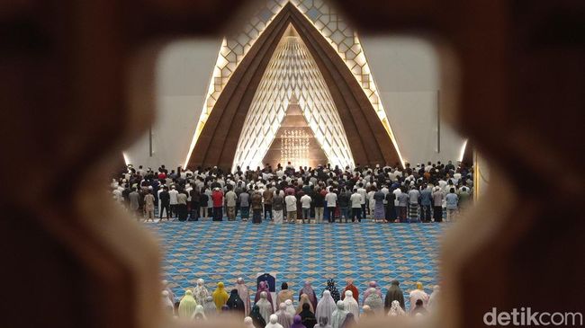 Masjid Raya Al Jabbar resmi dibuka kembali dan menggelar salat tarawih berjamaah. Jemaah sudah berbondong-bondong ke masjid sejak sore hari.