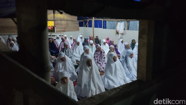 Seperti halnya di Kampung Selahuni, Desa Nagrak, Kecamatan Cianjur. Kaum perempuan melaksanakan salat tarawih di masjid darurat yang didirikan dengan menggunakan bambu dan terpal sebagai dindingnya.