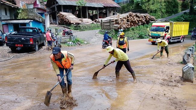 "Pembersihan material tanah yang menutupi jalan Raya Tasikmalaya-Garut dilaksanakan Tagana, bersama anggota KSB Kutawaringin dan UPTD Pelayanan 5 Tasikmalaya dan petugas lainya," kata Jembar.