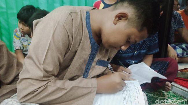 Pemandangan itu terlihat di Masjid Al Ihya, Kompleks Nusa Persada, Kelurahan Leuwigajah, Kecamatan Cimahi Selatan, Kota Cimahi. Mereka kadang berbisik satu sama lain, tak jarang saling menyontek.
