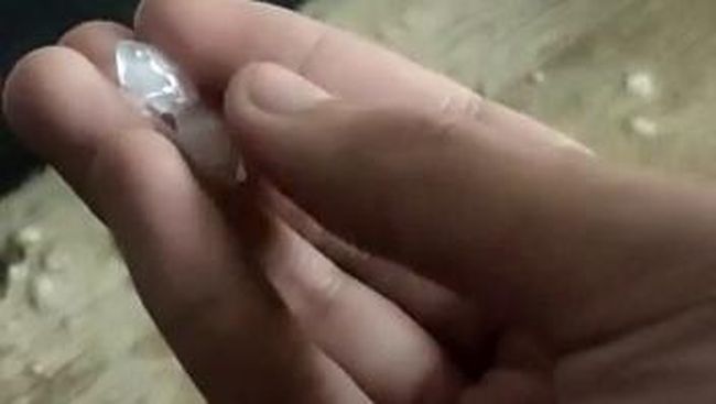Dalam video tersebut, terlihat hujan dengan deras mengguyur wilayah tersebut. Bahkan butiran es tersebut berjatuhan di halaman rumah warga.