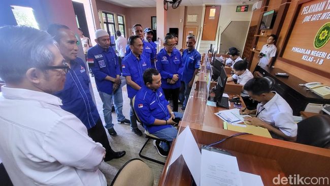 Ketua DPC Demokrat Mohamad Muraz mengatakan, kedatangan mereka ke PN Kota Sukabumi untuk meminta perlindungan hukum atas langkah Kepala Staf Presiden (KSP) Moeldoko mengajukan peninjauan kembali (PK) terhadap vonis kasasi Moeldoko VS Menkumham terkait AD/ART Partai Demokrat (PD) Agus Harimurti Yudhoyono (AHY).