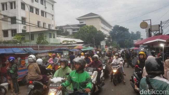 Kondisi jalanan yang macet serta pedagang yang membuka stand di sepanjang jalan tersebut membuat pembeli harus rela antre dan berdesak-desakan.