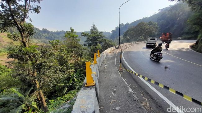 Pagar besi yang dicopot itu panjangnya sekitar puluhan meter. Dengan demikian, pembatas jalan dengan jurang hanya mengandalkan tembok beton yang tingginya kurang dari satu meter.