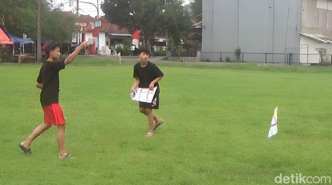 Pantauan detikJabar sekitar pukul 15.00 WIB, para bocah Siswa Menengah Pertama (SMP) itu terlihat begitu asik saat bermain layangan. Mereka tampak hirau dengan teriknya panas matahari menjelang sore hari itu.