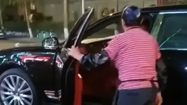 Dalam rekaman yang pertama kali diposting ke Weibo baru-baru ini, sang wanita terlihat melangkah keluar dari Bentley warna hitam. Dia mengenakan kemeja merah muda bergaris, sepatu bot karet dan celemek, tampak siap mencuci piring.