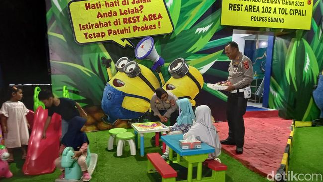 "Kami dari Polres Subang menyediakan Pospam Rest Area 102 yang kita dekor dengan kartun minions dengan maksud agar menarik minat anak-anak dan keluarganya untuk beristirahat sejenak," kata Sumarni di lokasi yang sama.