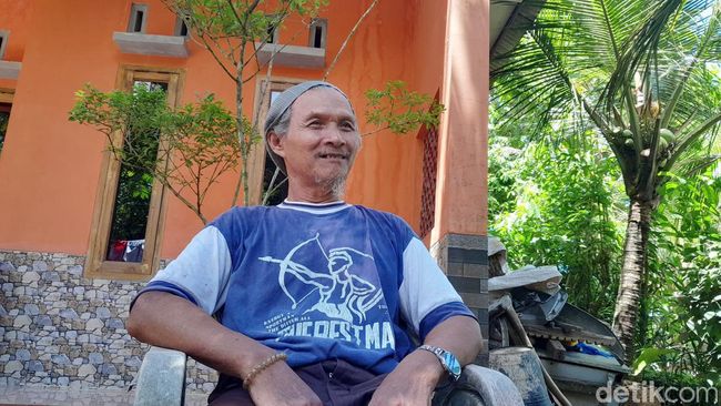 "Pokoknya suara menggema, gelap, warna langit hitam. Mau ngasih makan domba, kemudian naik ke pohon kelapa saat ada suara gemuruh," katanya.