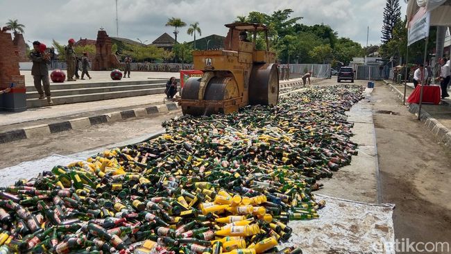 Pemecahan botol miras oleh unsur Forkopimda Indramayu membuka pemusnahan massal minuman beralkohol tersebut. Pecahan kaca dari botol berserakan di sekitar alun alun. Cairan minuman keras itu terlihat mengalir deras menuju saluran irigasi.