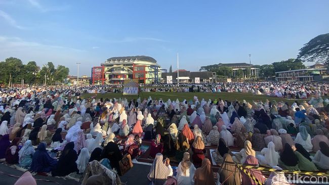 Ribuan warga Sukabumi melaksanakan salat Idul Fitri 1444 Hijirah di Lapang Merdeka. Pelaksanaan ibadah berlangsung penuh khidmat dan berjalan lancar.