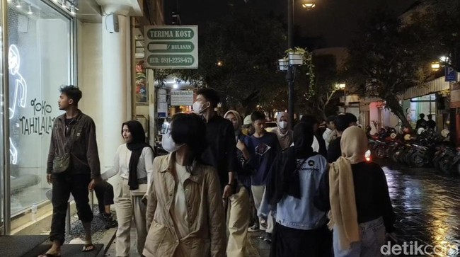 Pantauan detikJabar Selasa (25/4/2023) malam pukul 20.00 WIB, Jalan Braga, Kota Bandung padat dengan wisatawan. Jalan Braga sepanjang 700 meter ini penuh dengan wisatawan yang berjalan kaki.
