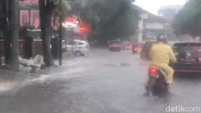 Hujan deras mengguyur Kota Bandung, Rabu (26/4/2023) sore. Banjir pun muncul di beberapa titik.
