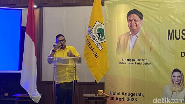 DPD Partai Golkar Kota Sukabumi melakukan Musyawarah Luar Biasa (Musdalub) di Balai Riung Diamond Hotel Anugrah, Minggu (30/4/2023). Hasilnya, Sri Widagdo terpilih secara aklamasi sebagai Ketua Golkar Kota Sukabumi menggantikan Jona Arizona yang tersandung kasus penggelapan mobil rental.