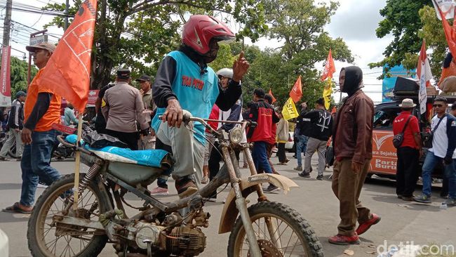 Namun, detikJabar melihat ada satu hal berbeda diantara barisan para demonstran. Yaitu sebuah sepeda motor butut milik salah satu massa aksi turut mejeng di depan gedung DPRD Kabupaten Indramayu.