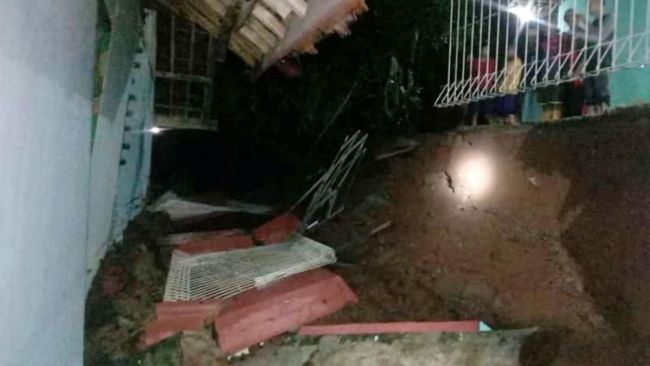 "Tebing tembok menimpa satu rumah hampir ambrol. Tembok milik pak Heri dan menimpa rumah milik Rusman. Mengalami rusak sedang. Sementara tidak mengungsi, hanya yang biasa tidur di kamar belakang sekarang di depan," ucapnya.