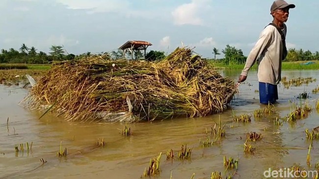"Sekarang ngebut mengambil padi karena ada beberapa yang masih bisa diambil. Ketinggiannya 50-80 cm atau masih selutut orang dewasa," ucapnya.