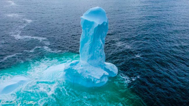 Penampakan gunung es berbentuk lingga atau penis di lepas pantai Kanada menyedot perhatian publik. Foto itu diambil oleh fotografer dari Newfoundland, Kanada.