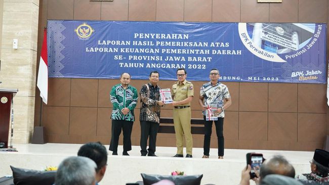 Secara simbolis penyerahan buku LHP LKPD diserahkan Kepala BPK Perwakilan Provinsi Jawa Barat Paula Henry Simatupang kepada Wali Kota Bogor Bima Arya dan Wakil Ketua DPRD Kota Bogor Jenal Mutaqin, didampingi Kepala Sub Auditorat Jabar III Kriesthian Widyantoro. Penyerahan dilakukan di kantor BPK Perwakilan Provinsi Jawa Barat, Kota Bandung, Selasa (9/5/2023).