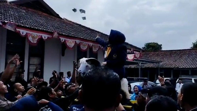 Namun, aksi tak terduga kemudian terjadi, setelah ketiganya menyawer uang pecahan masing-masing Rp 50, 20 dan 10 ribu. Uang itu kemudian diburu para kader dan simpatisan partai, yang berjoget mengitari dodombaan sambil diiringi musik.