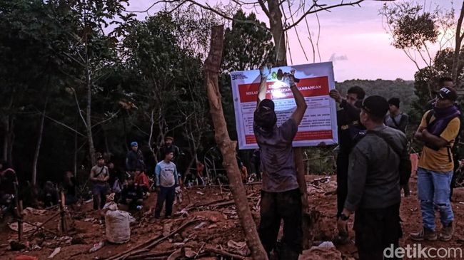 "Sementara atas dasar perintah pimpinan, petak 103 B luas 13 hektare bloknya Cibuluh, Cihanjuang Barat BKPH Lengkong. KPH Sukabumi. Kami bersama rekan-rekan Polhut Sukabumi, tujuan untuk memasang plang larangan imbauan agar supaya para penambang, keluar dengan paham dasarnya agar mereka bubar," papar Dedi.