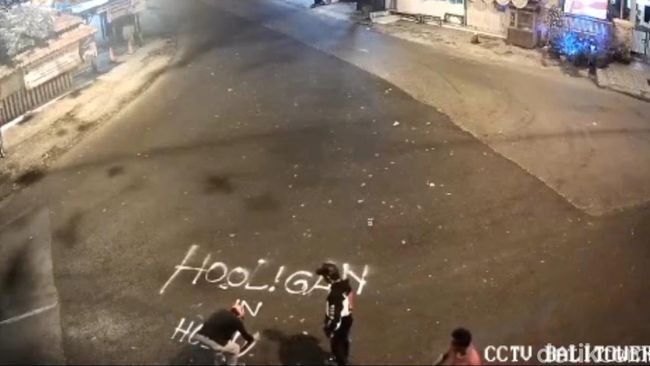 Dilihat detikJabar dalam video viral itu, sejumlah orang melakukan aksi corat-coret badan jalan provinsi, tepatnya di wilayah Bunder, Jatilihur, Purwakarta. Mereka menulis kalimat "Hooligan In Holiday" di tempat yang sama.